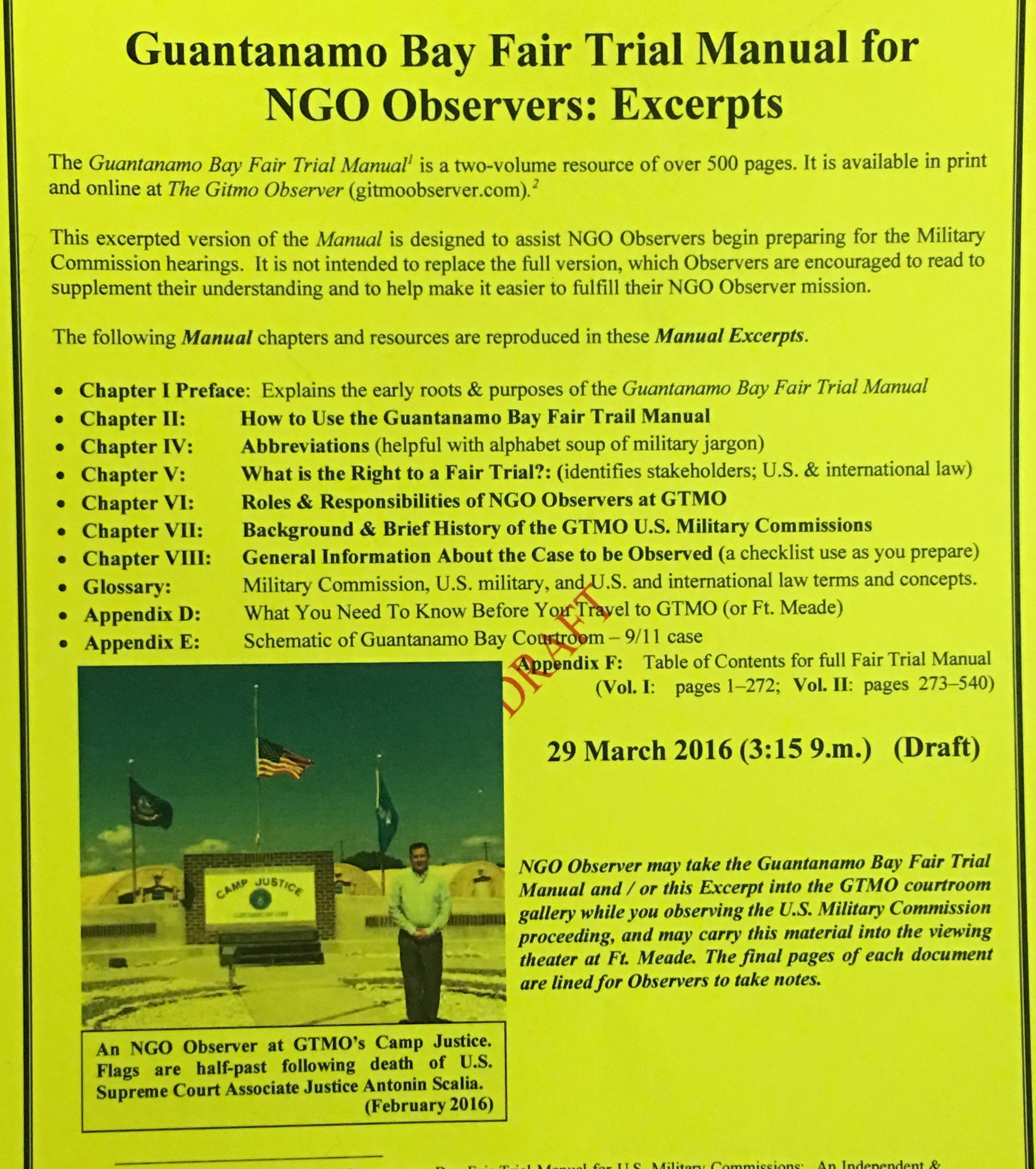 On Monday, 30 May 2016, the U.S. Military Commission held the first day of this week’s pre-trial hearings in the case against the 5 alleged masterminds of the 9/11 attack on the World Trade Center and Pentagon. I was sitting in the Guantanamo Bay courtroom during today’s hearings, which were fascinating.